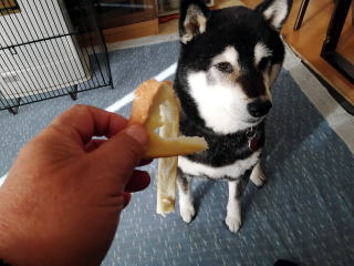 答えは、トーストの真ん中は既にひじきが食べ、パンの耳は、見向きもせずに私にくれている写真である。ちなみにメロンパンだけは、ひじきが真ん中を食べ、外側は私が食べられるので得した気分になれる。