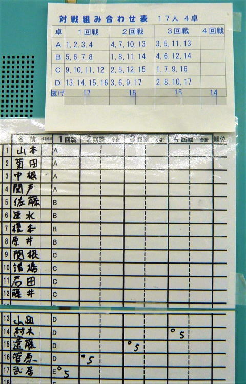17人となり、役員が1回戦ごとに抜ける