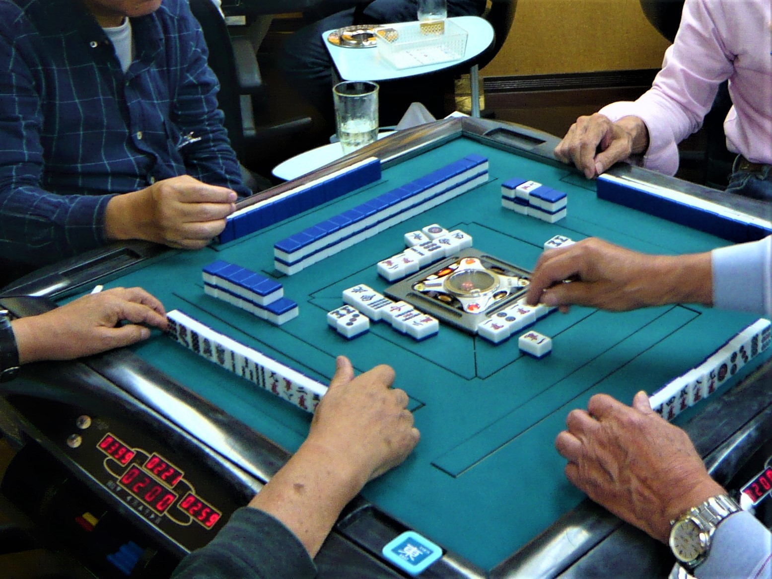 麻雀とは、4人で対戦し、数字や文字が書かれた34種類136個の牌(ハイ)というものを使って、567のような順列や東東東のような集合体を早く完成することを競うゲームです。