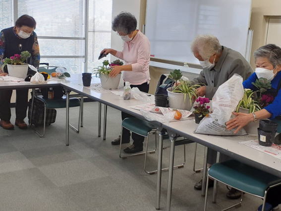 植え方をはじめ、育て方なども丁寧に教えていただき、参加さえた皆さんそれぞ れが綺麗な寄せ植えが完成し、大変満足な教室となりました。
