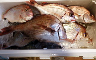 釣果は,鯛、鯛、大漁。30Lのクーラー満タン。