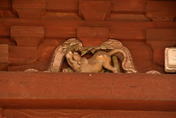 「一層の蟇股(かえるまた)には方位にあわせた十二支の彫刻がある。」蛙が足を踏ん張っているような形
