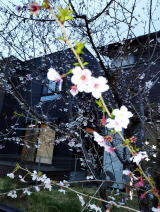 しかし、我が家の一本桜、富士山の裾野に多く自生し、花が小さい「富士桜」が庭で満開となり、リビングから花見を楽しんでいます。